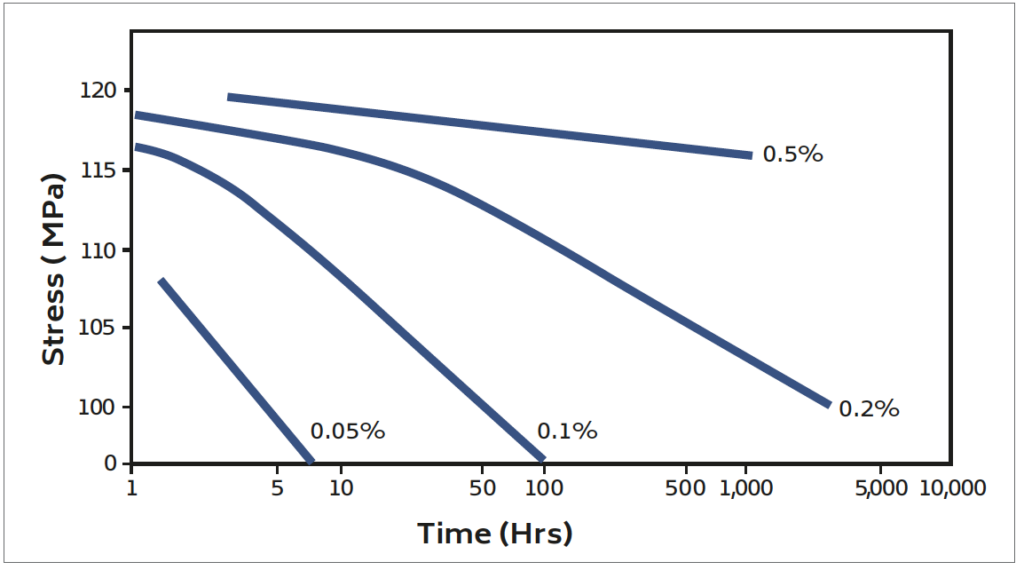 Figure 5. Stress / time relationship for specified creep strains at 150˚C